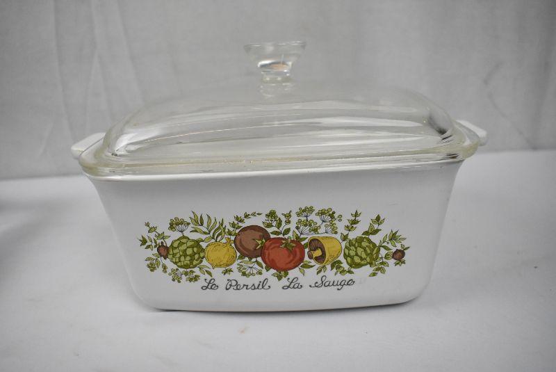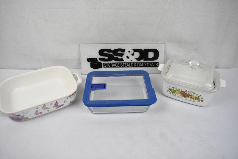 3 pc Kitchen Glass Bakeware: Butterflies, Pyrex, Vintage Corning Ware