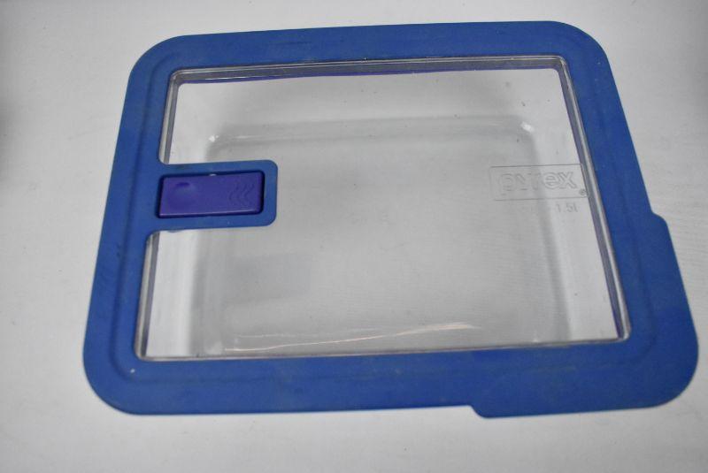 3 pc Kitchen Glass Bakeware: Butterflies by Grace, Pyrex with blue lid 6 cups, Vintage Corning Ware with lid 7x5.5x3
