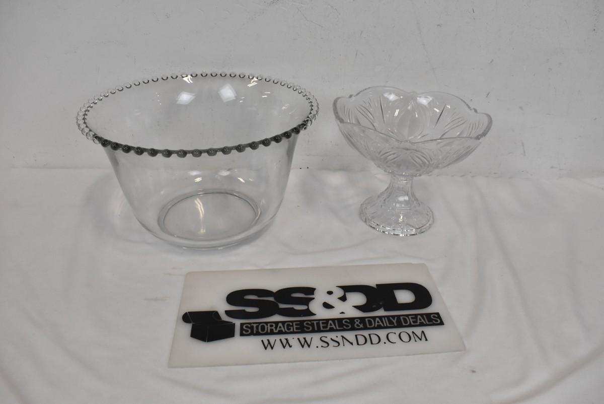 3 Pc Large Glassware, Large Punch Bowl, Centerpiece
