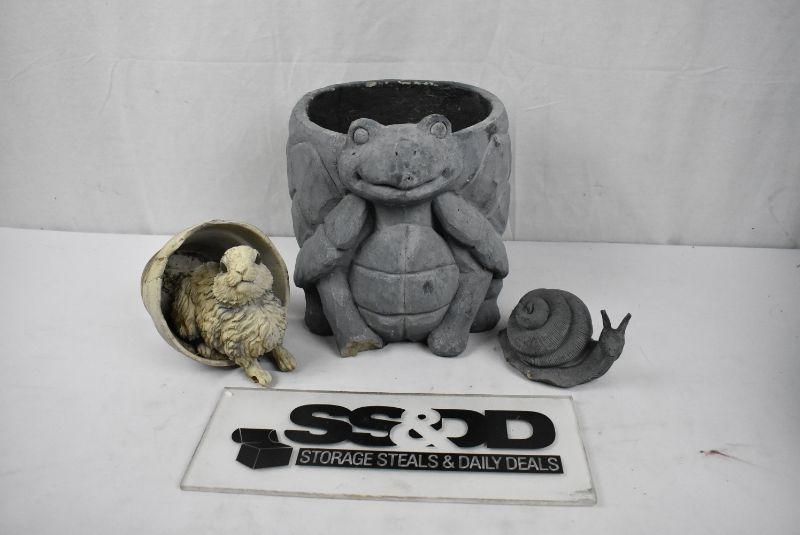 3 pc Lawn Decor: Bunny, Snail, & Turtle (Turtle is a planter)