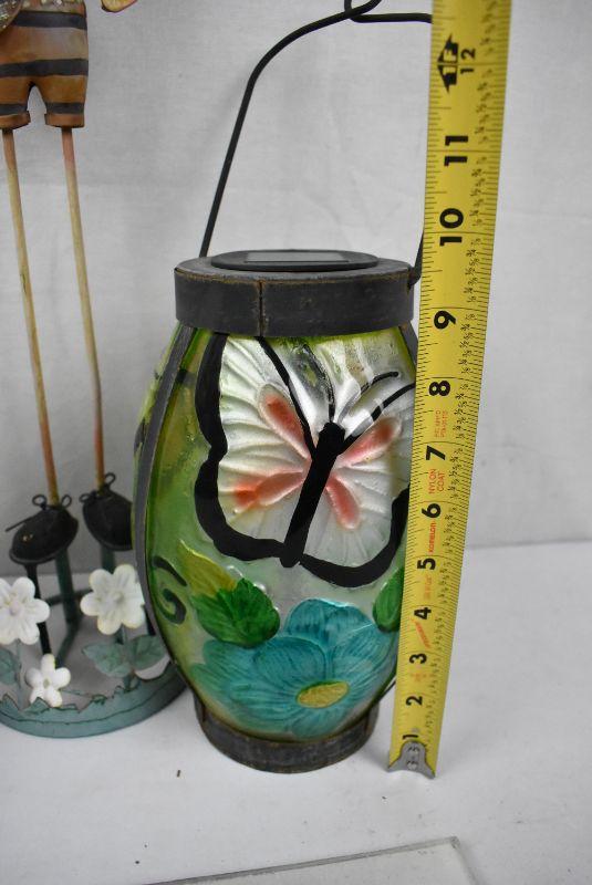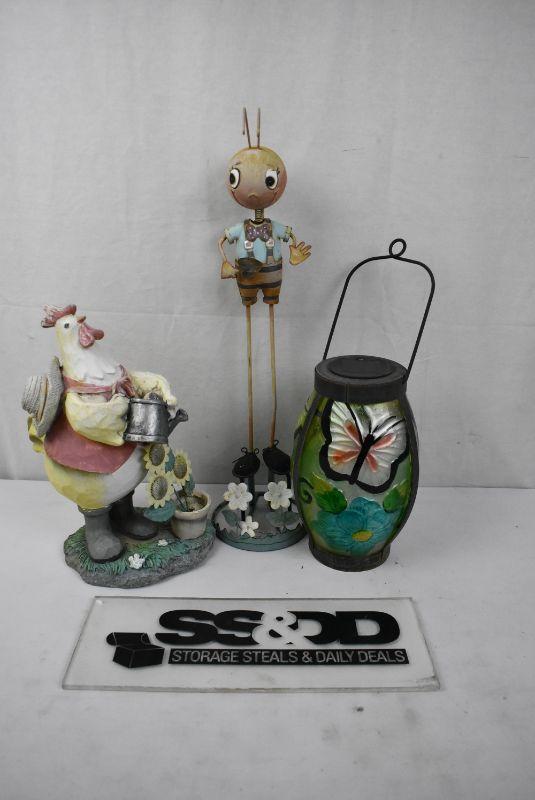 3 pc Lawn Decor: Hen, Gardening Ant, & Butterfly Lantern