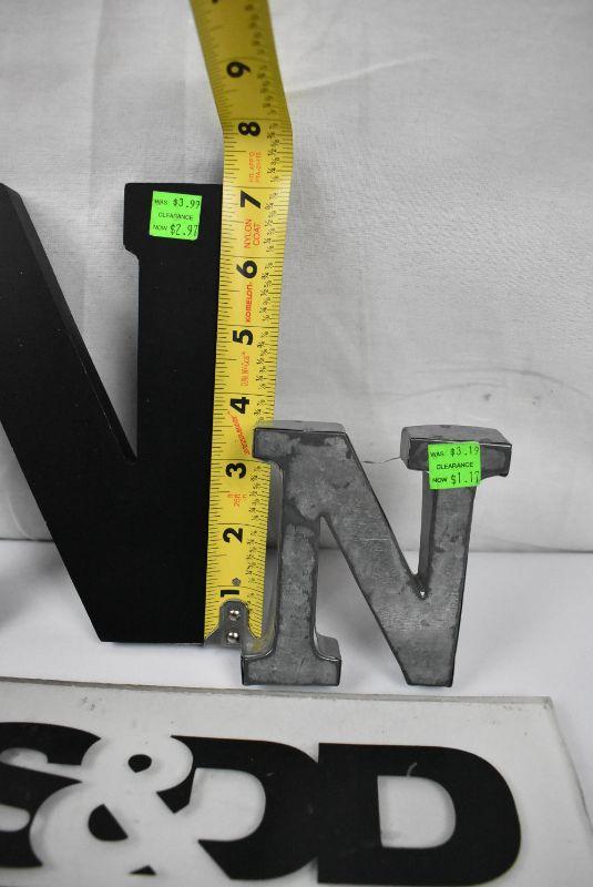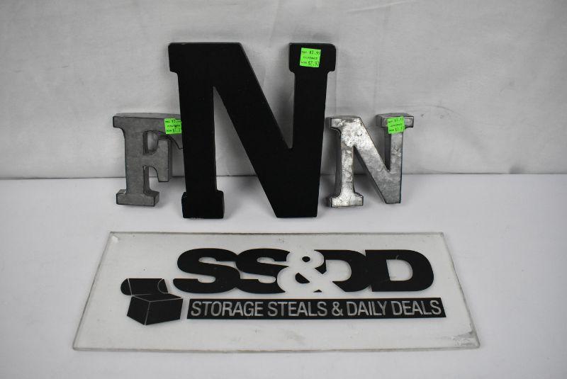 3 pc Letters: Metal "F" & "N" (4" Tall) Black Wood "N" (7" Tall) - New