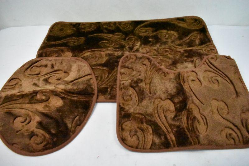 3 Pc Non-Slip Bathroom Rugs Brown, - New, No Packaging