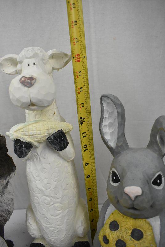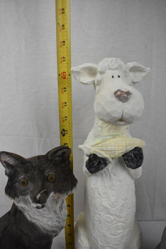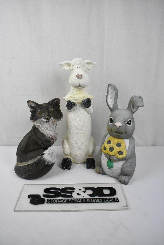 3 pc Outdoor Animal garden Decor: Fox, Sheep with Corn (has been repaired) and Bunny with Sunflowers