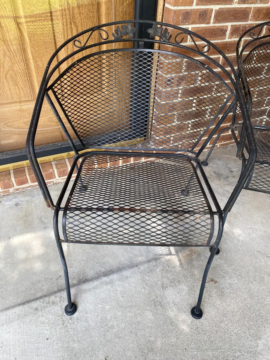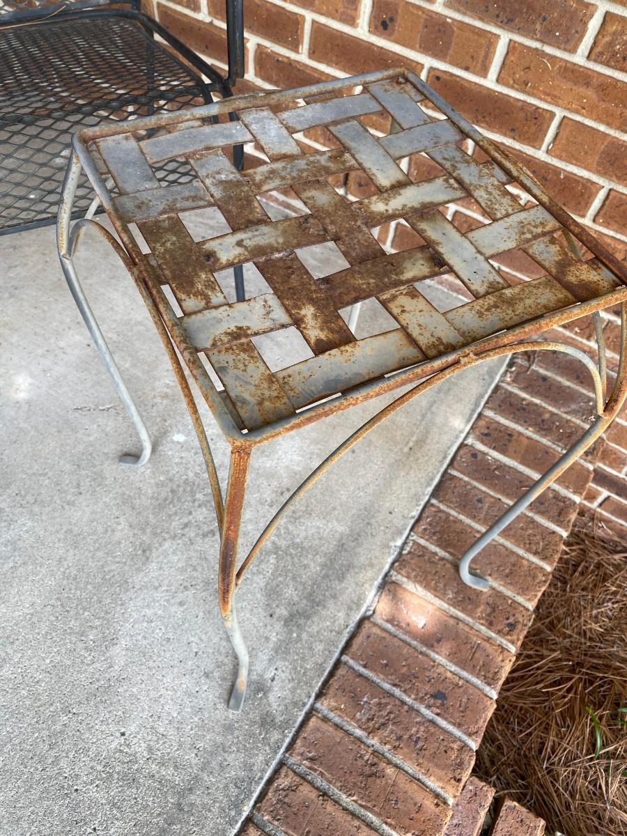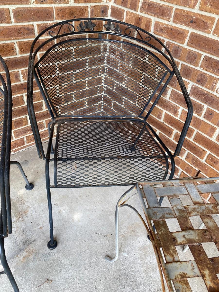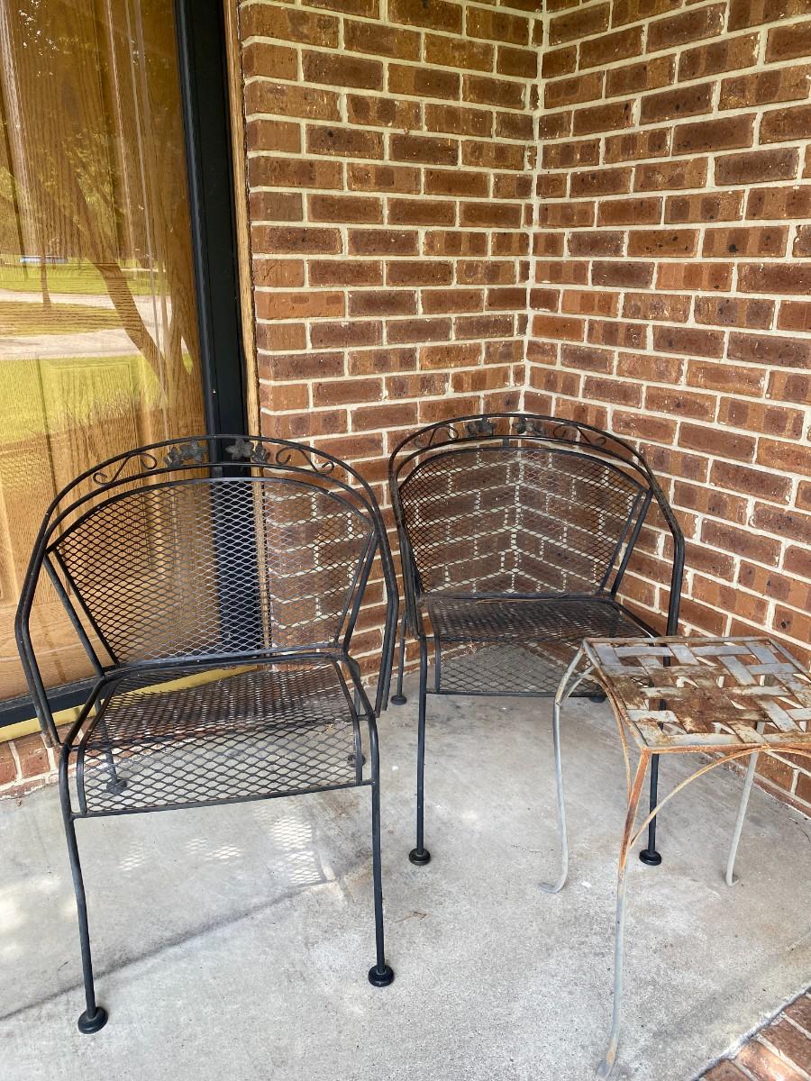 2 Metal Chairs (One Needs Seat Repair) and 1 Plant Stand As Pictured