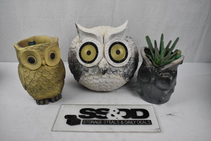 3 pc Owl Garden Decor. 2 planters, 1 solar with light up eyes