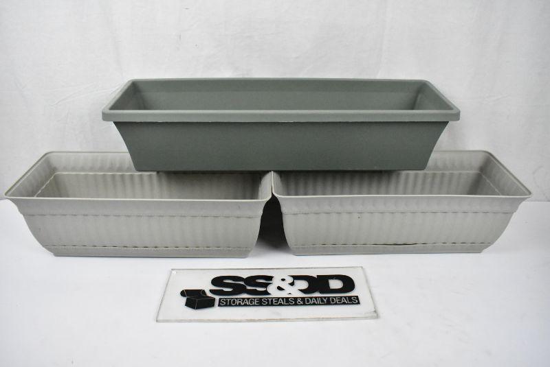 3 pc Plastic Planter Boxes, Rectangles. Gray/Green