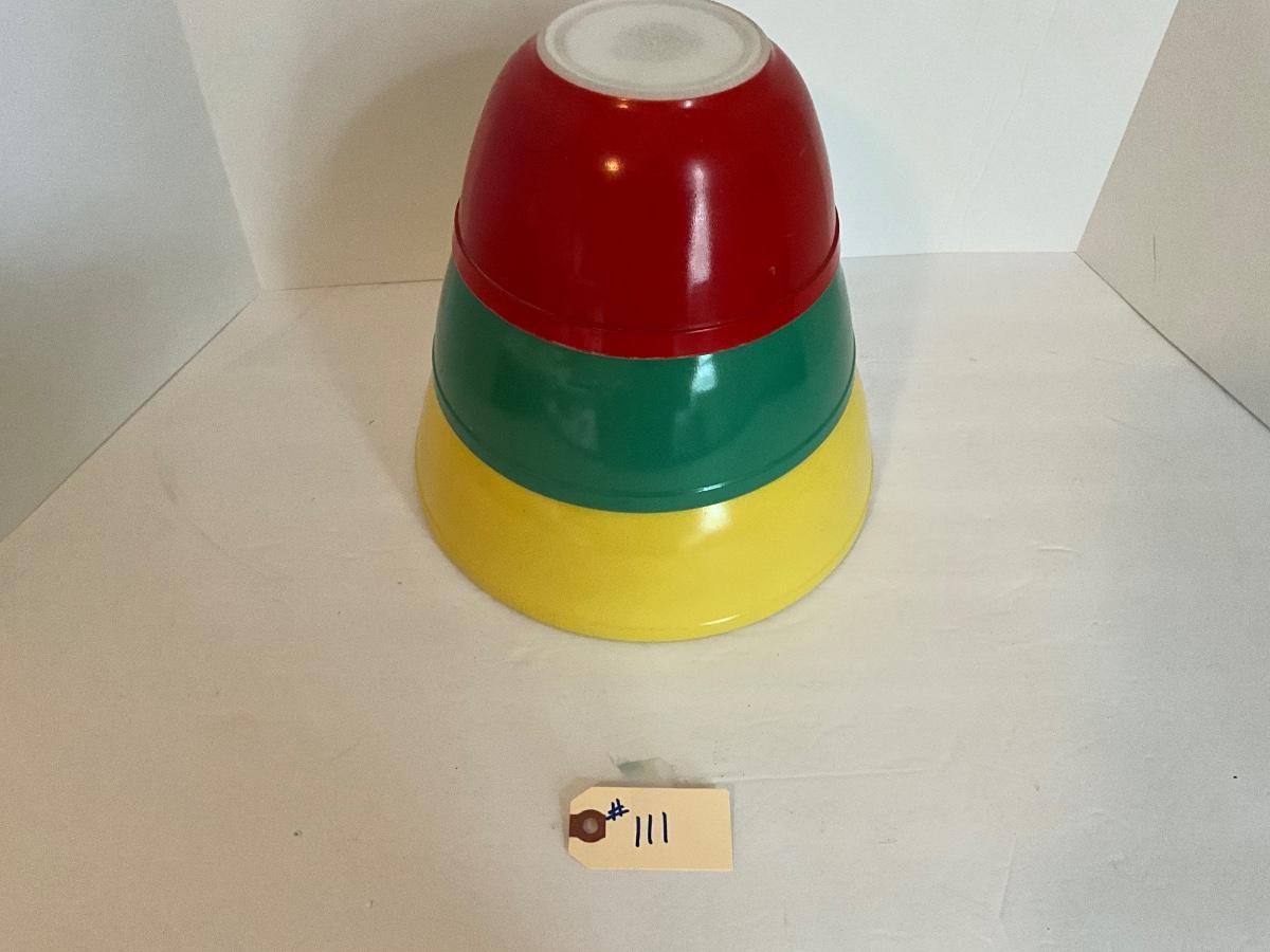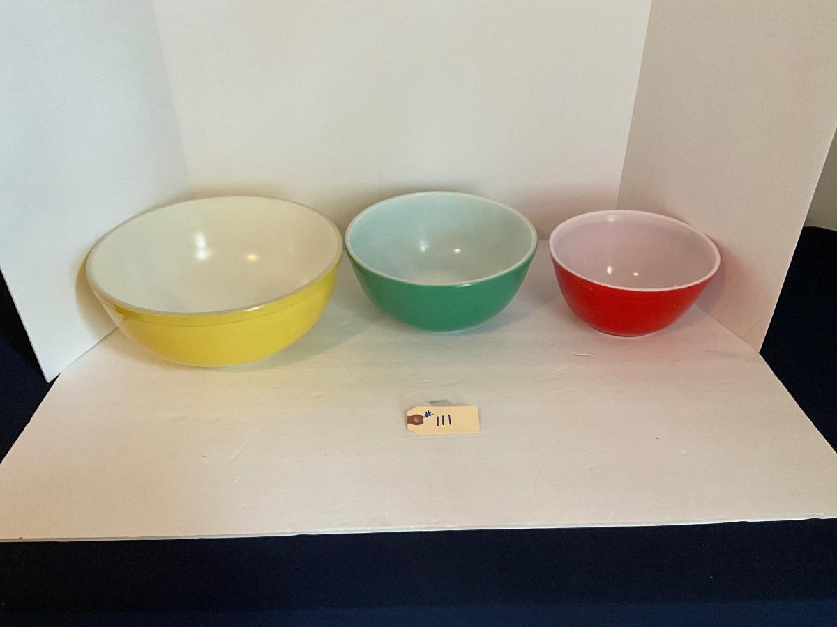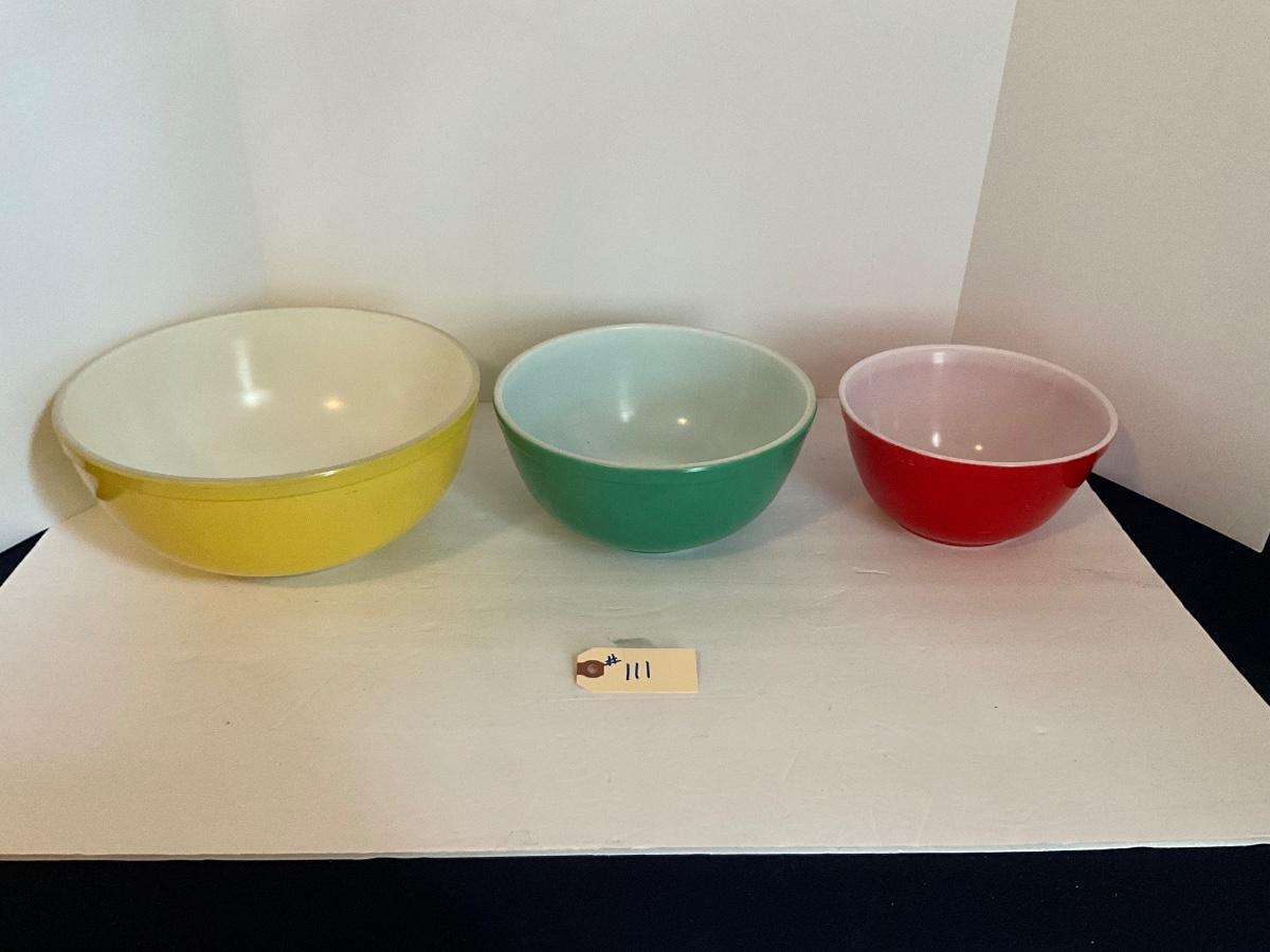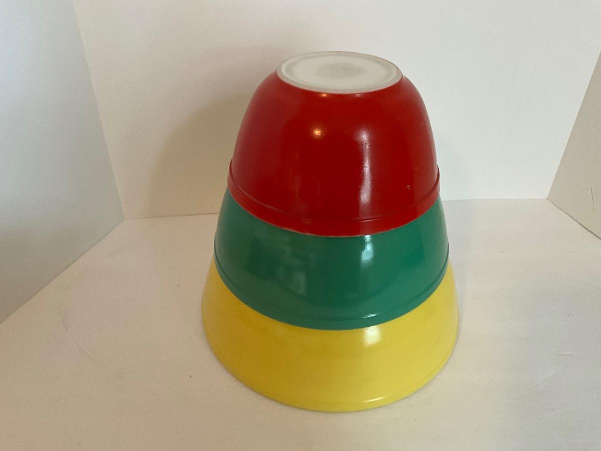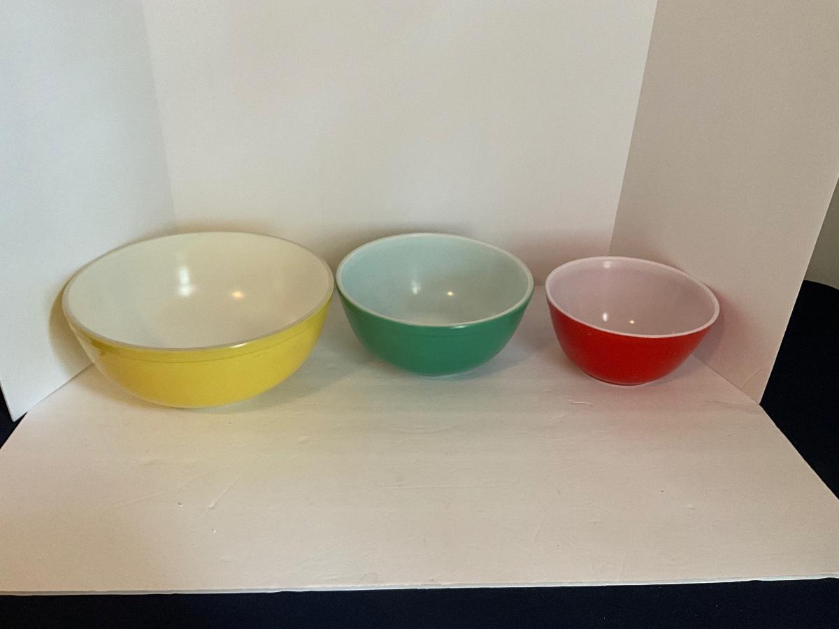3 Pc Primary Pyrex Mixing Bowls As Pictured