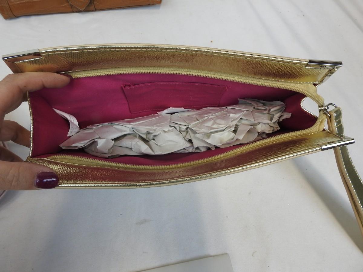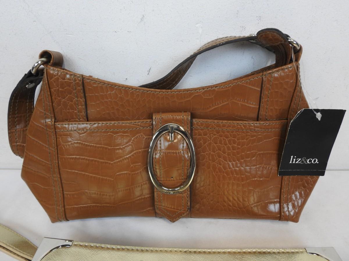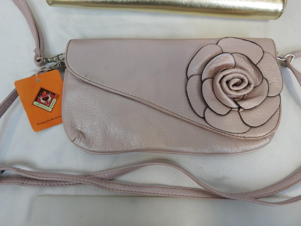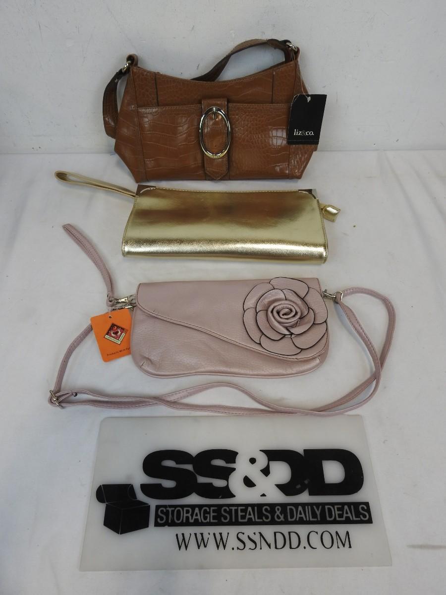 3 pc Purses: Brown Liz & C, Pink Mountain Mamas, & Gold (unbranded) - New