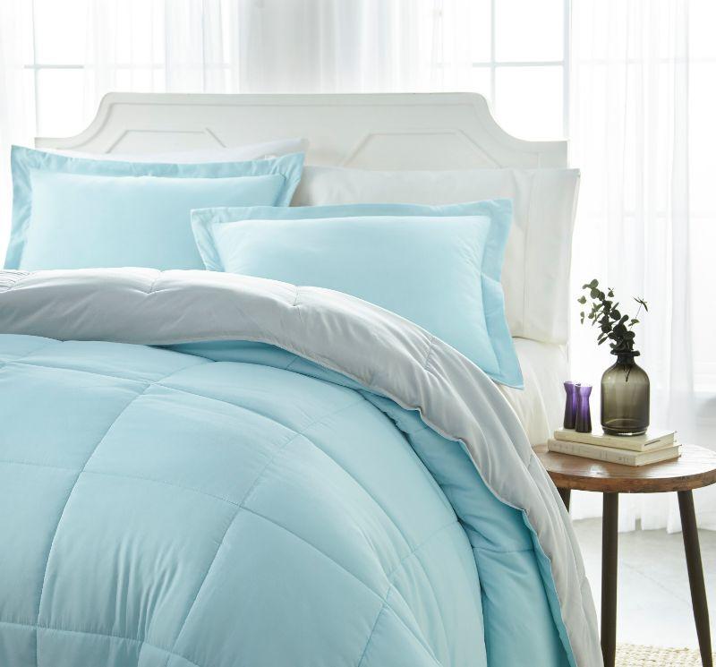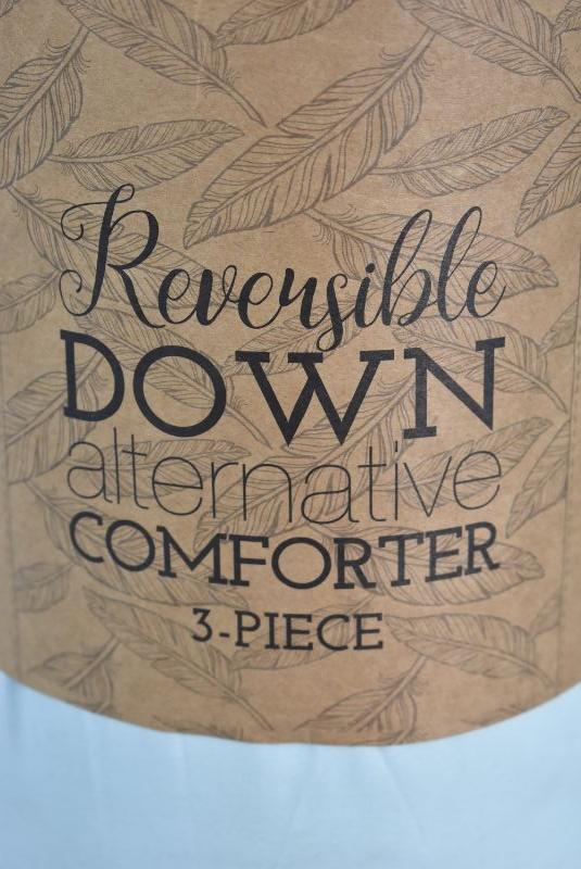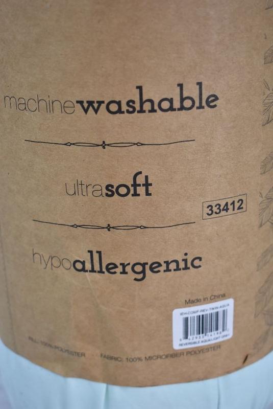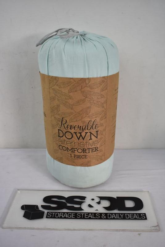 3 pc Reversible Down-Alternative Comforter, Aqua & Gray, Twin/Twin XL - New