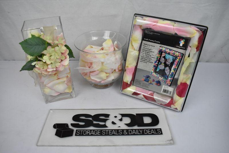 3 pc Rose Petals Decor: Vase, Bowl, & Frame