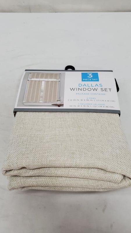 3 pc set, Dallas Window Set, Natural Color, 2 Tiers & 1 Tailored Valance - New