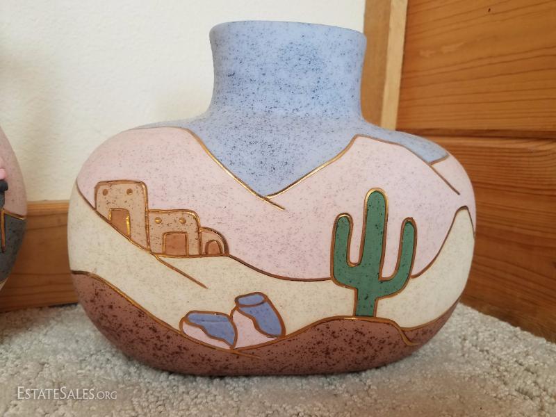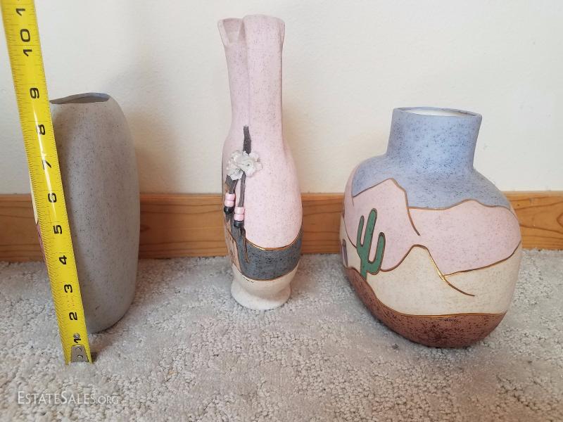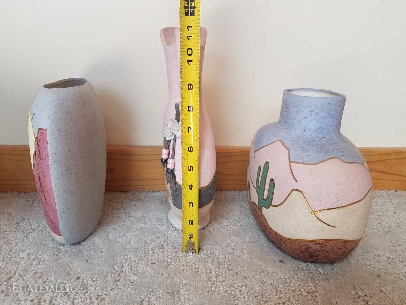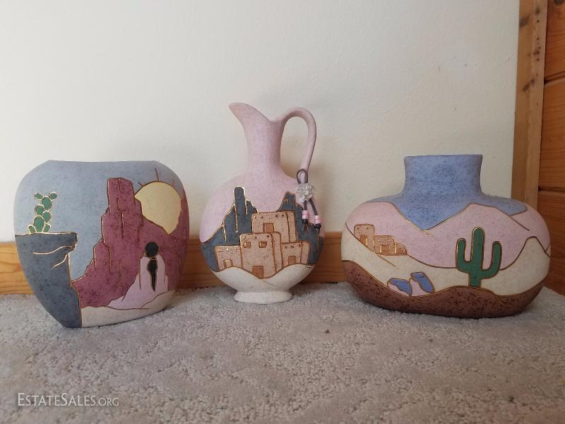 Lot-A5 3 Pc Southwest Pottery Collection Artist Signed Decorative Vases