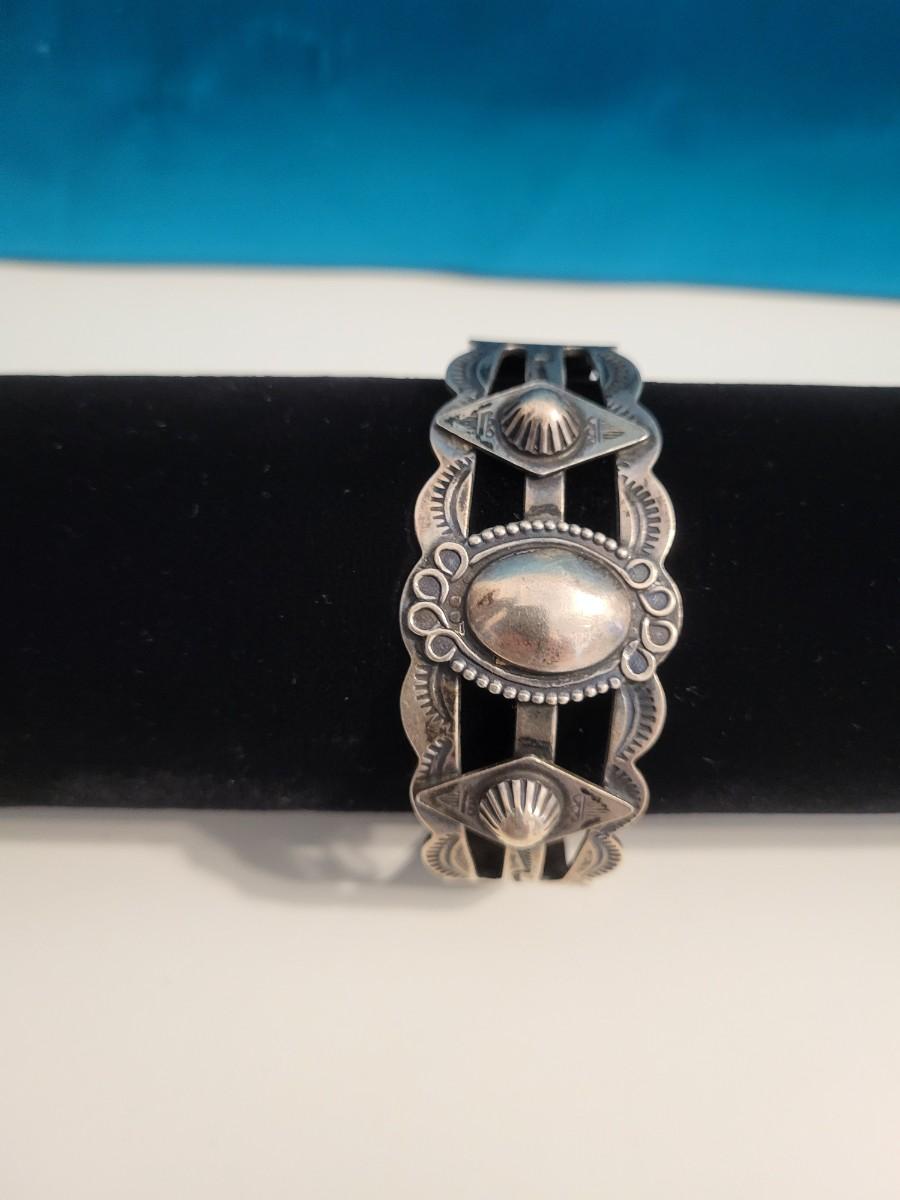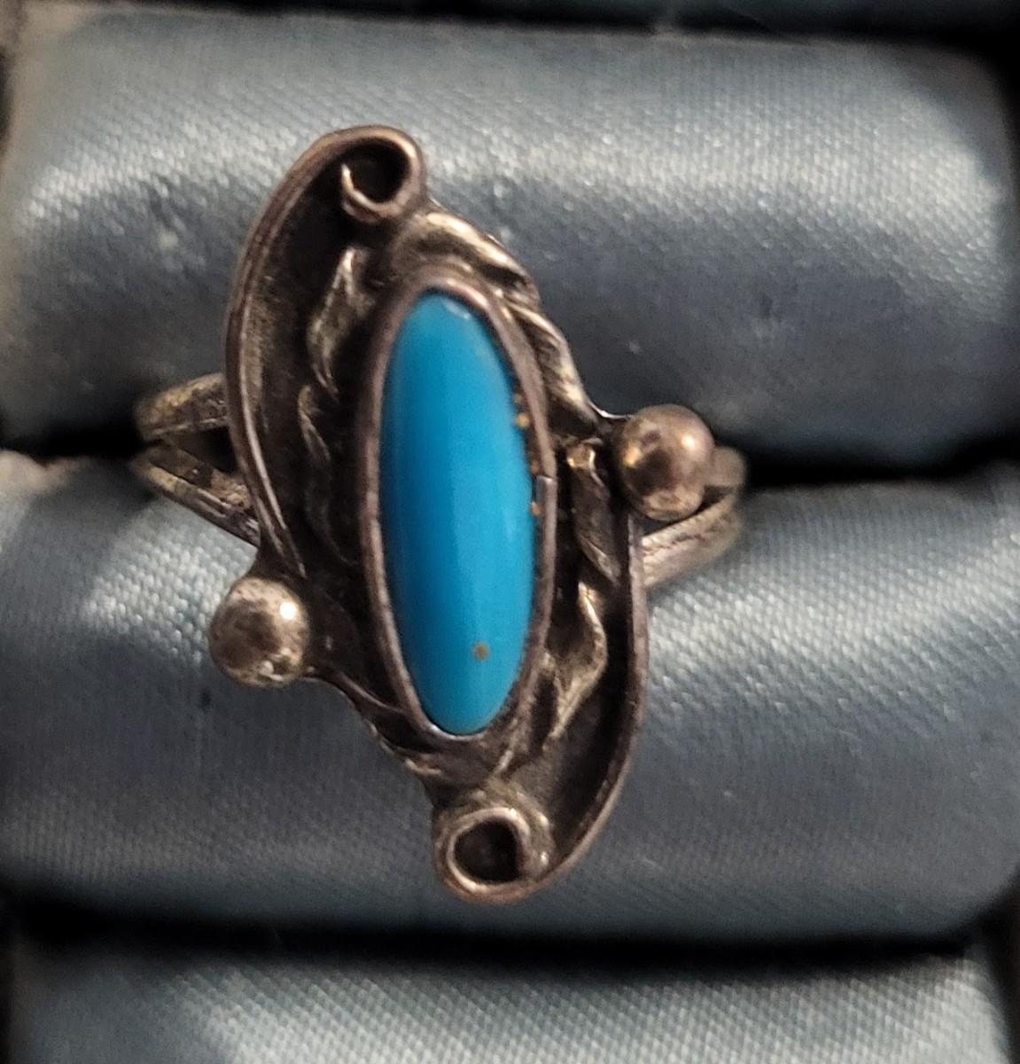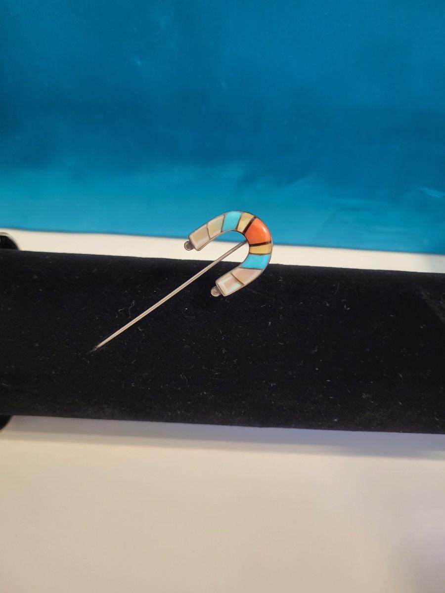 3 PC STERLING LOT - SIGNED STICK PIN 3.9g, TURQUOISE RING SIZE 5 1/2, BRACELET 32.4g