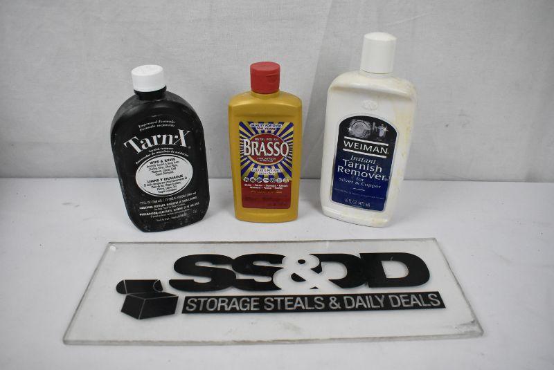 3 pc Tarnish Cleaners for Brass, Silver, & Copper. Each bottle is at least 75% full