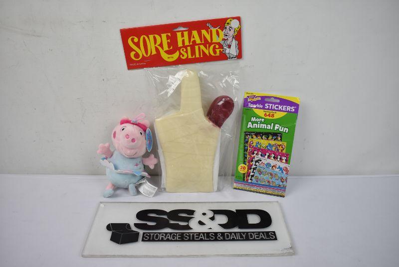3 Piece Toys: Peppa Pig, Joke Hand w/ Sling, 20 sheets Stickers: Animal Fun Sparkle Sticker Variety Pack, Pack of 648 - New