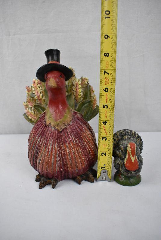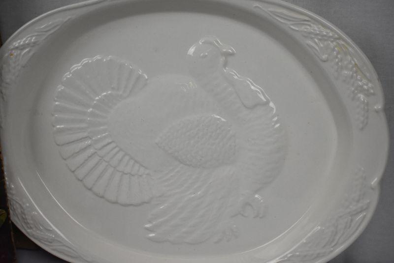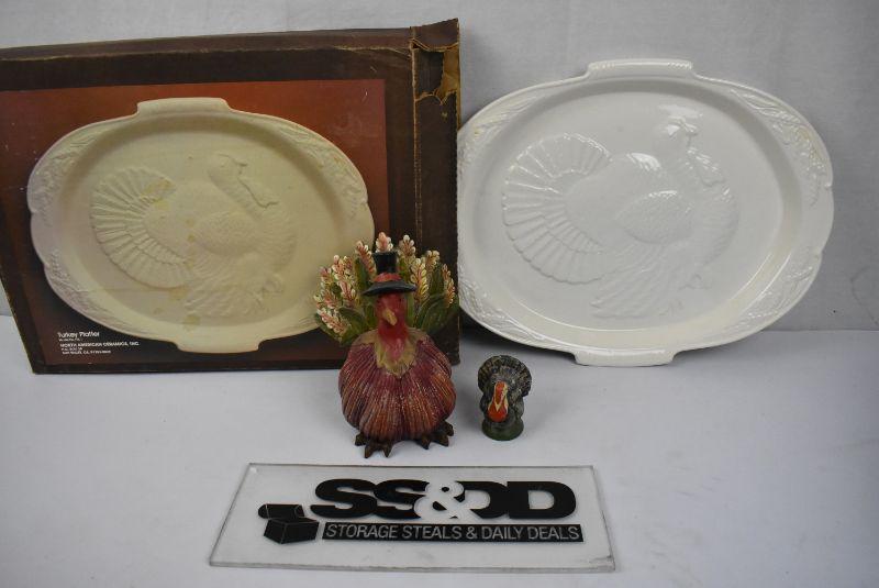 3 pc Turkeys: Ceramic Turkey Platter, & 2 Decorative Figurines