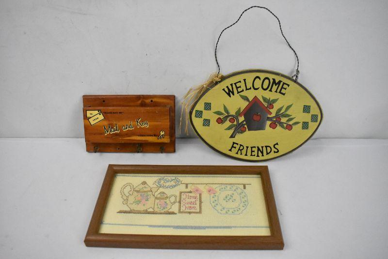3 pc Vintage Wall Decor: "Mail & Key" "Welcome Friends" & "Home Sweet Home"
