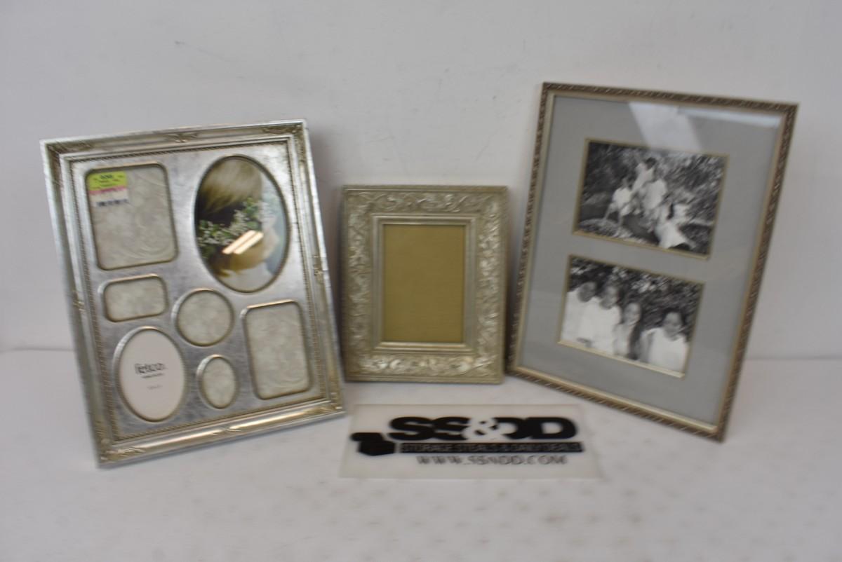 3 pc Wall Decor Silver Toned Frames: 7 Openings, 5x7 & Two 5x7 Openings