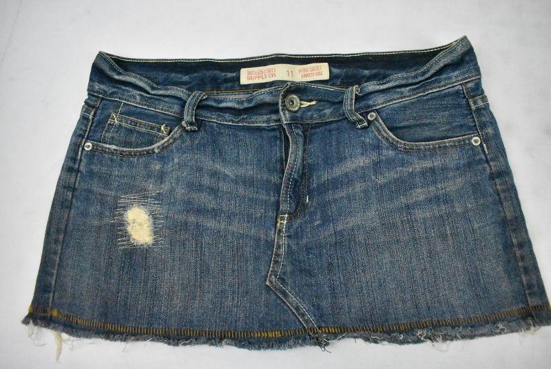 3 pc Women's Apparel size 11: 2 Denim Mini Skirts & 1 pair White Pants
