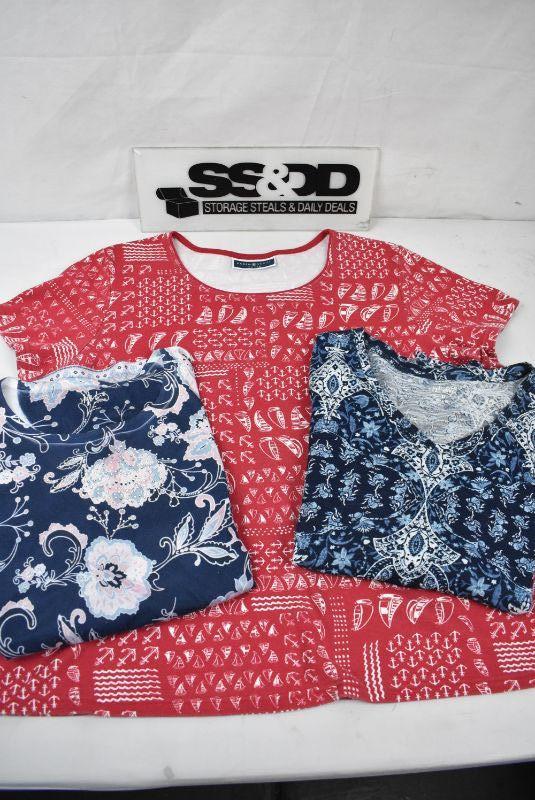 3 pc Women's Shirts sz Large & XL Red/White, Blue/White, Blue/Pink