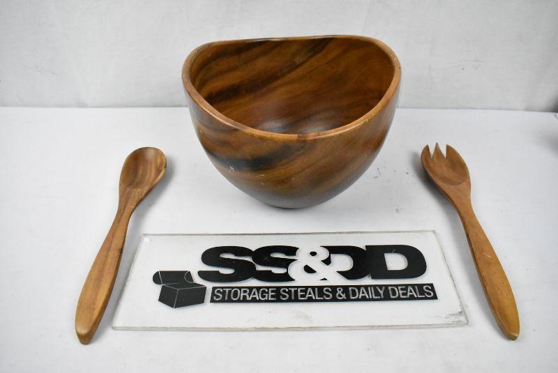 3 pc Wooden Salad Serving Bowl with Serving Spoon/Fork