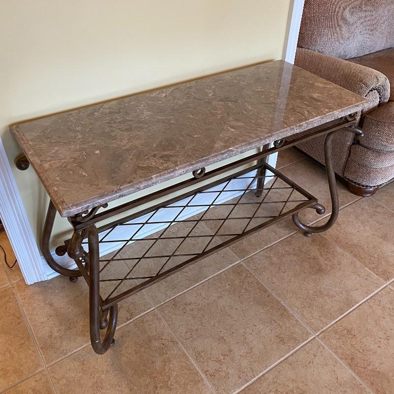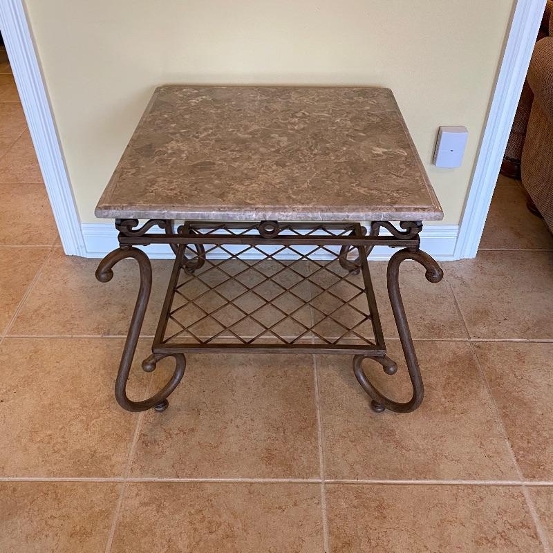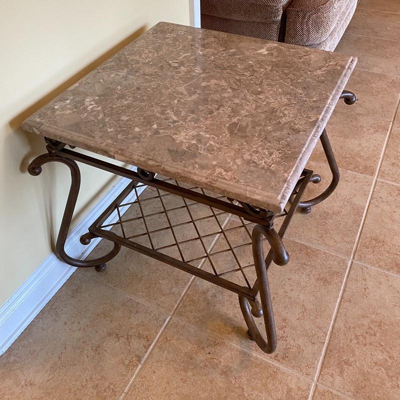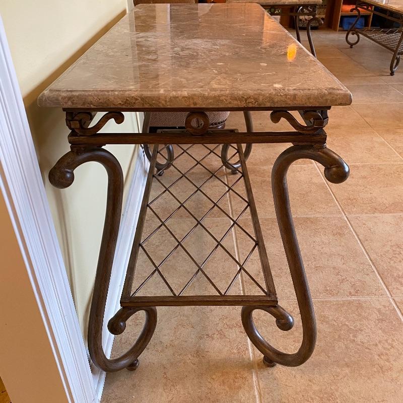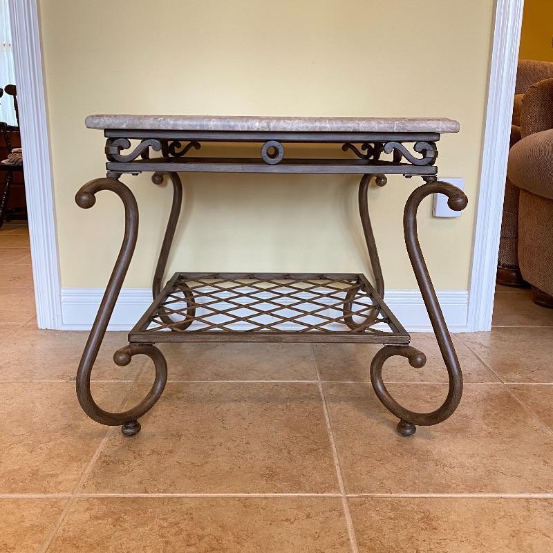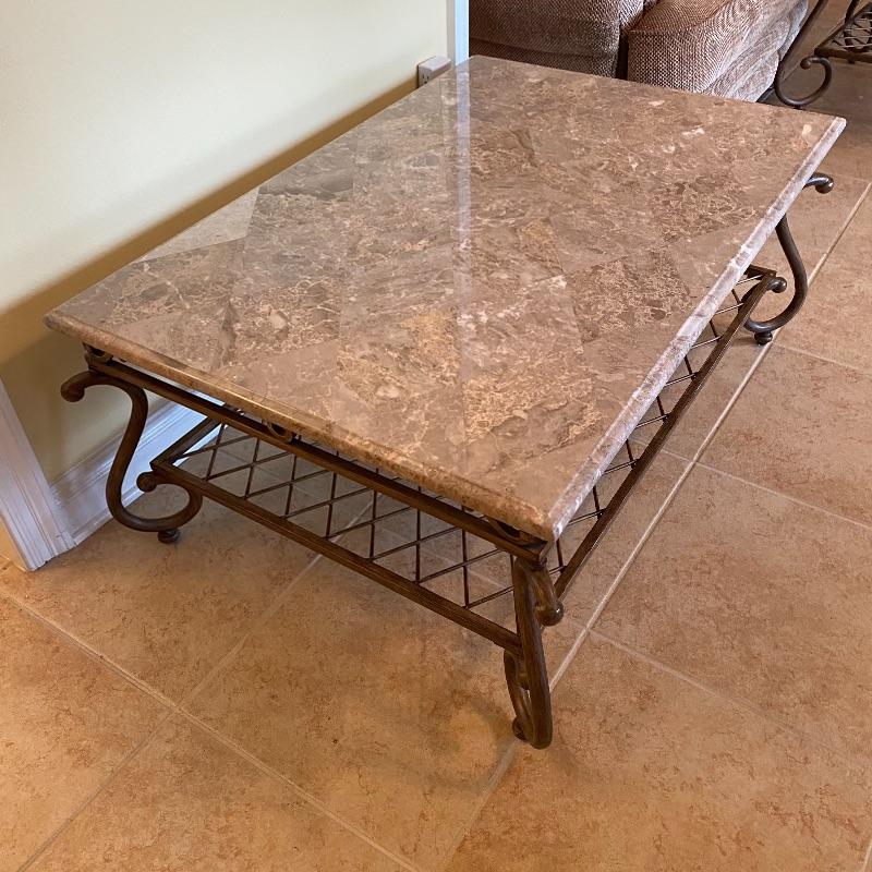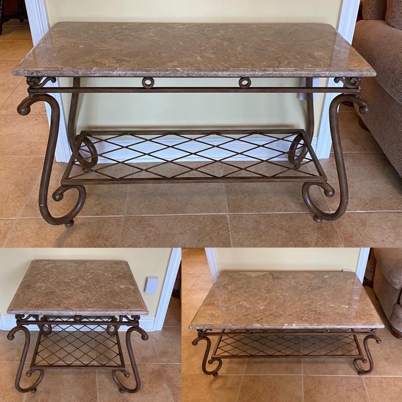 3 Pc Heavy Wrought Iron Tables with Marble Tops