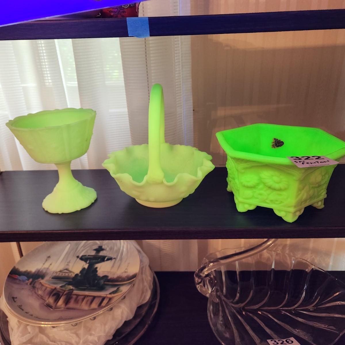 3 pcs Fenton Glass Bowls Basket