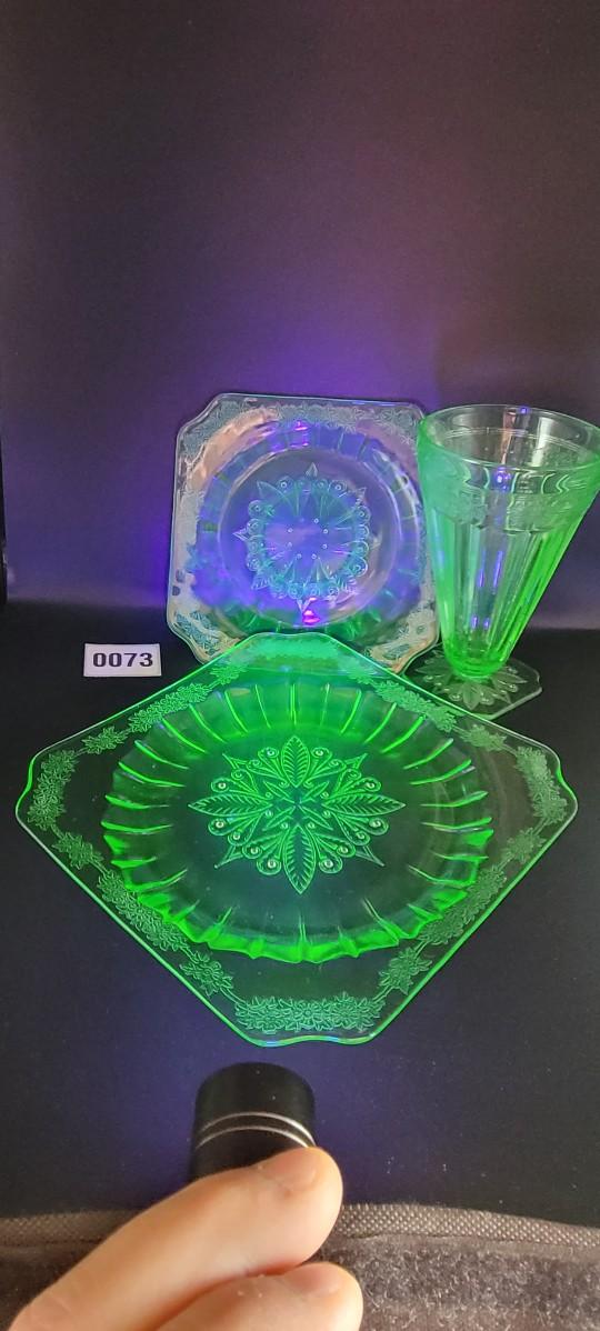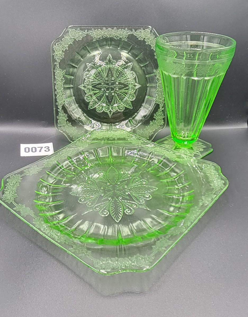 3 Pcs Uranium Glassware Adam by Jeanette