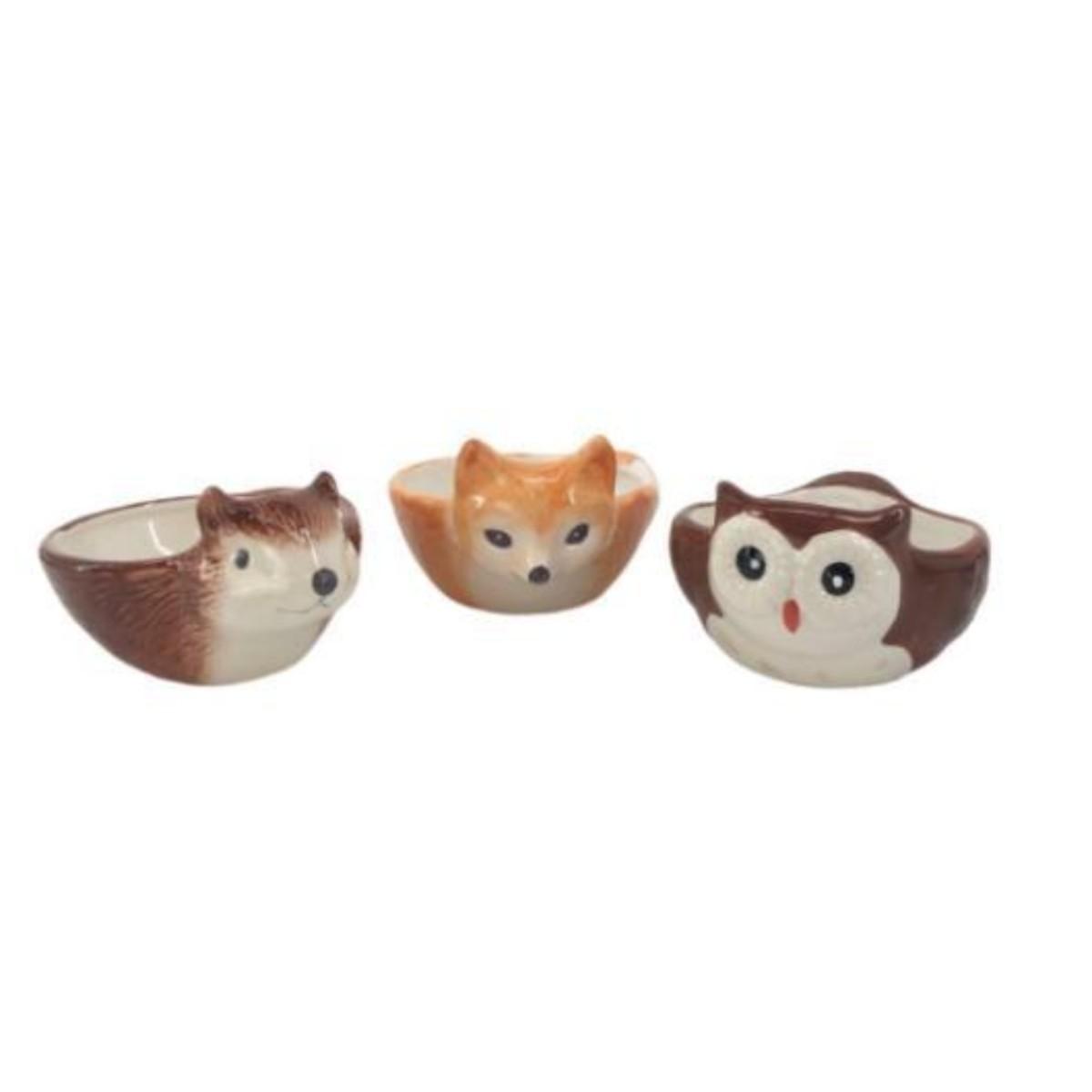 Three woodland critter bowls including a squirrel, fox, and owl. All in great condition!