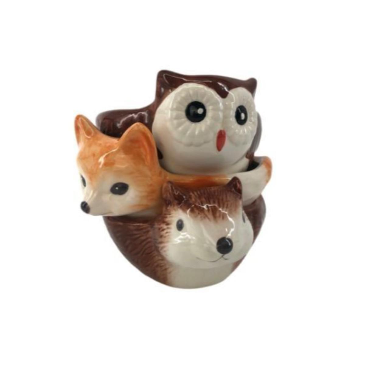 Three woodland critter bowls including a squirrel, fox, and owl. All in great condition!