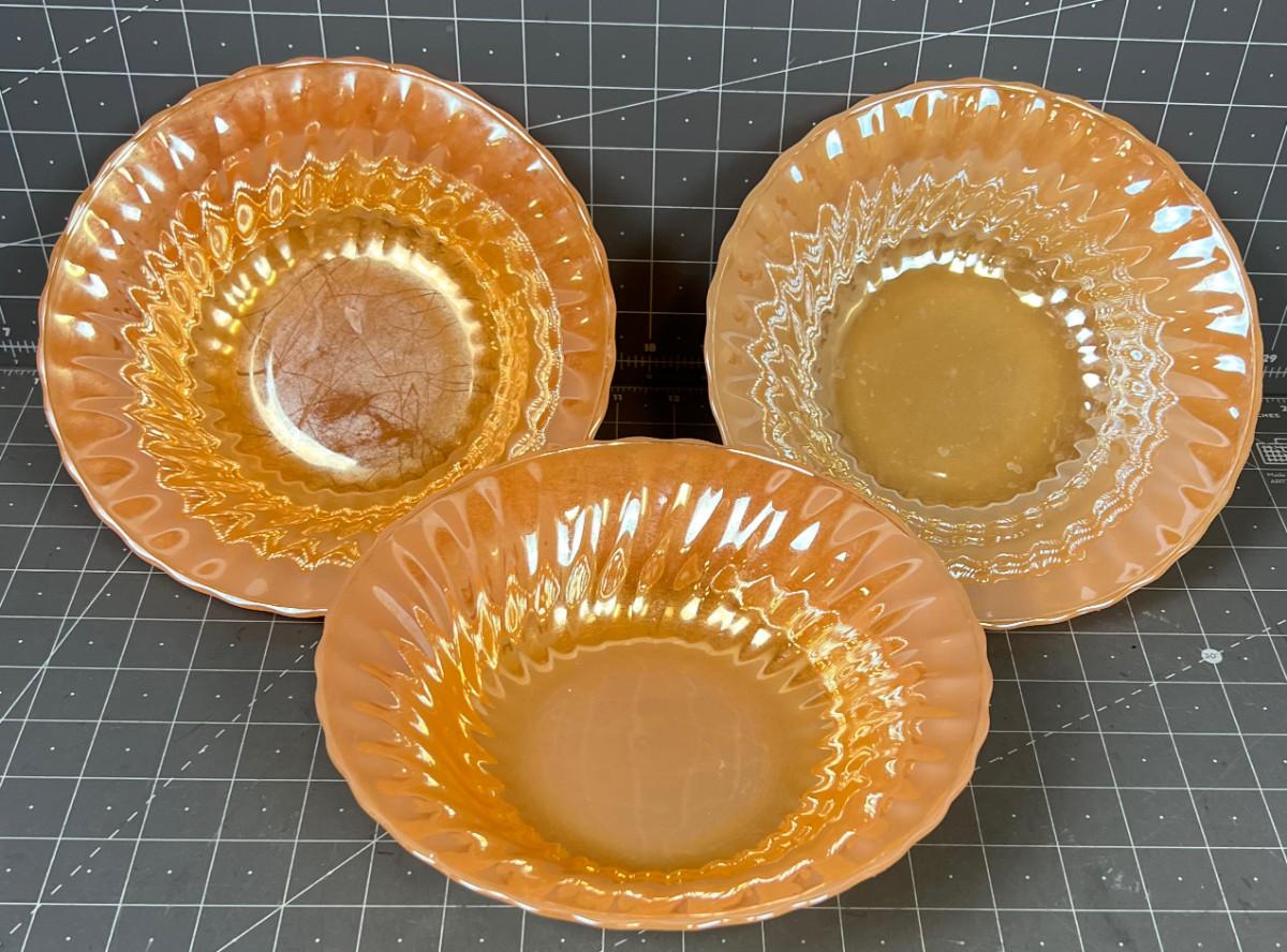 (3) Peach Luster Ware Bowls