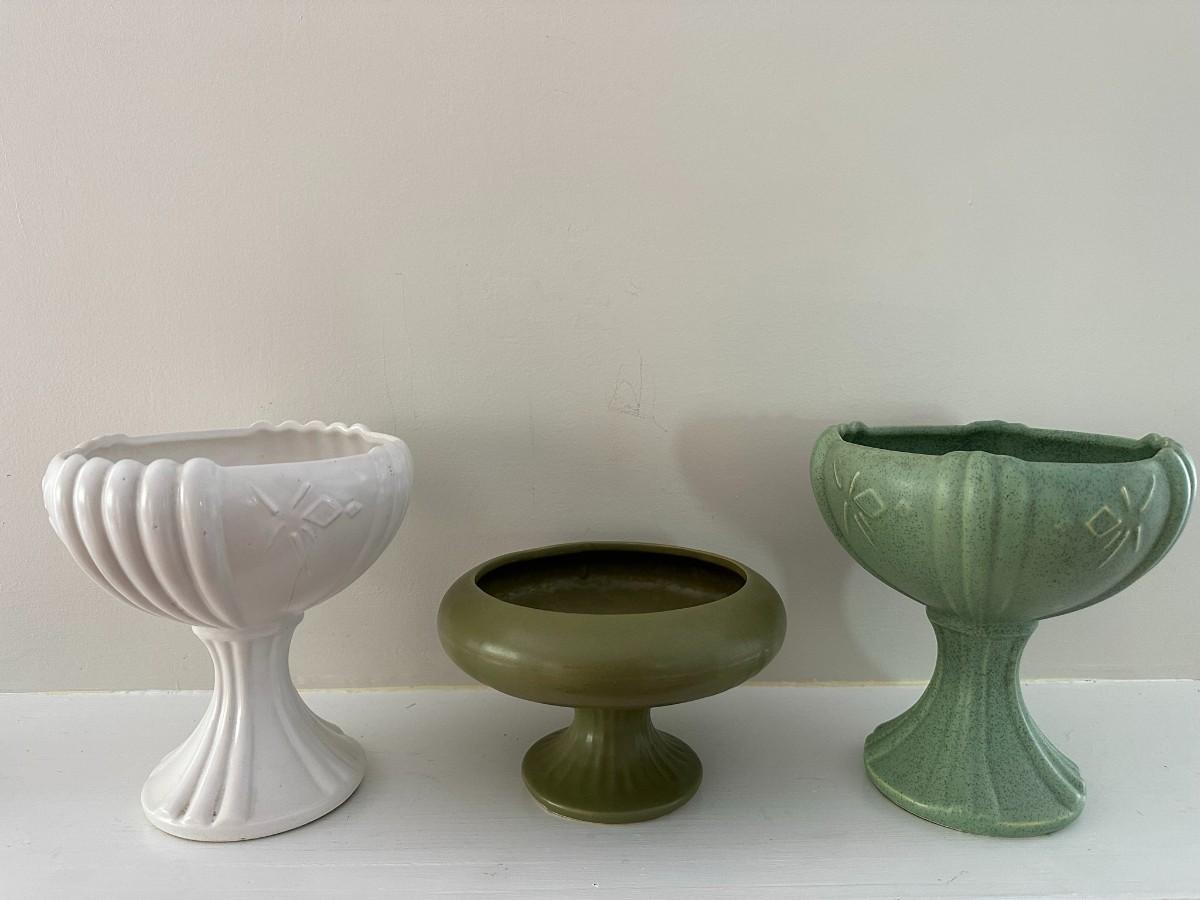 3 Pedestal Pottery Dishes