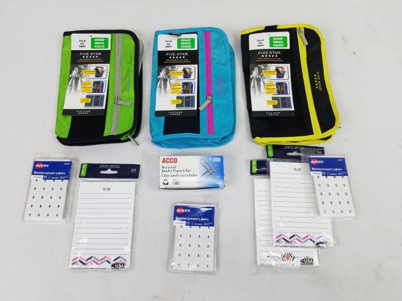 3 Pencil Pouches with Misc School/Office Supplies - New