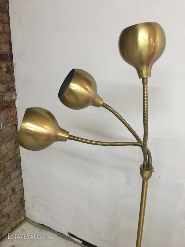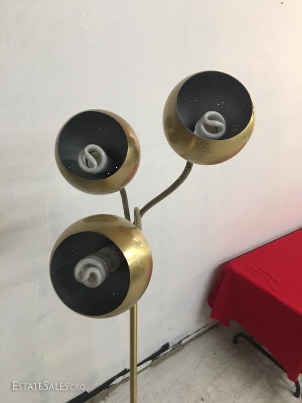 3 Pendant Floor Lamp MCM Satin Brass Adjustable