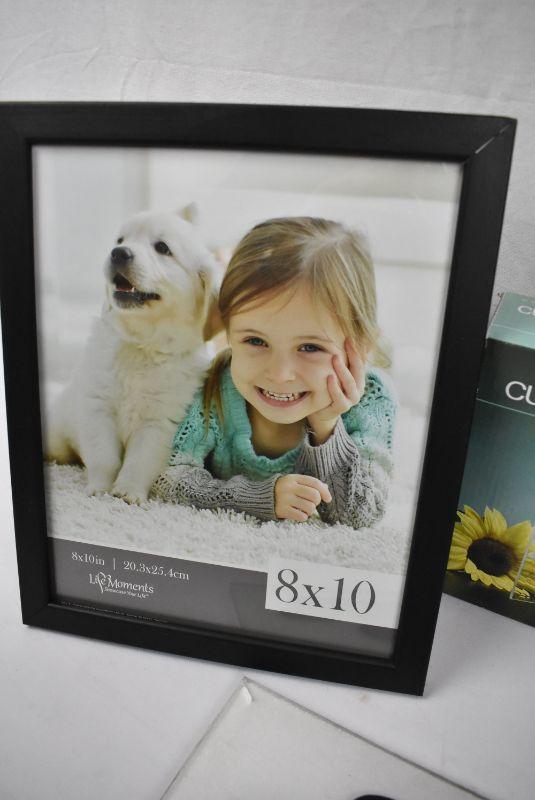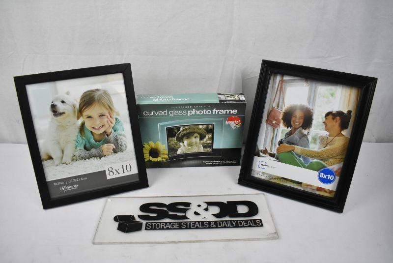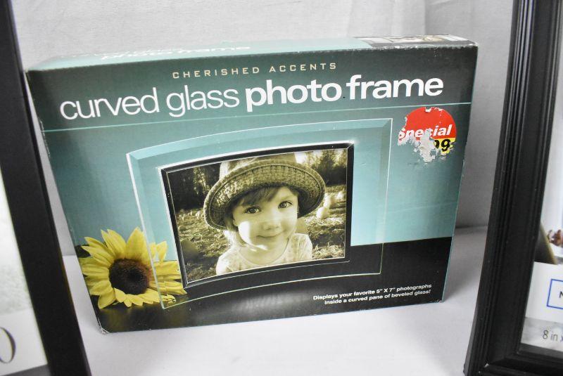 3 Photo Frames: 2 Black 8x10 & 1 Curved Glass 5x7 - New