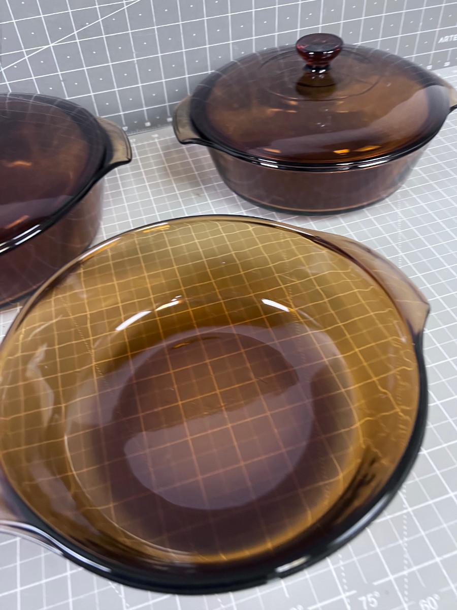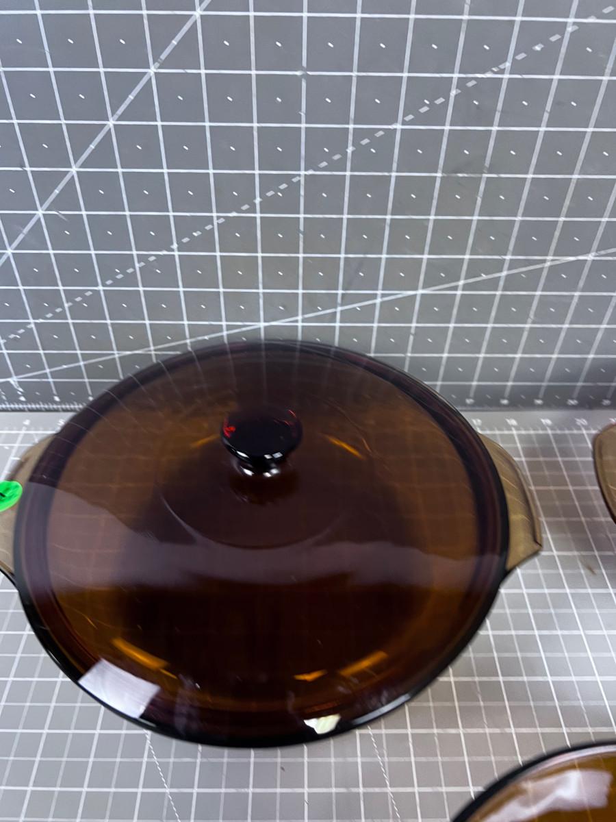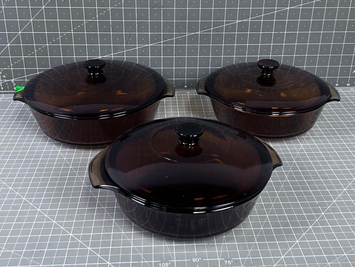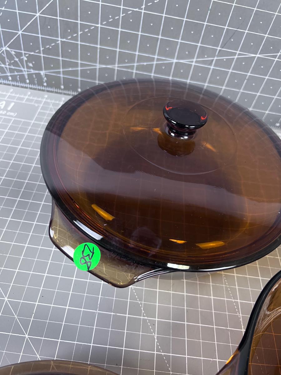 Used. Good Condition. VERY USABLE! 3 Lids to match.