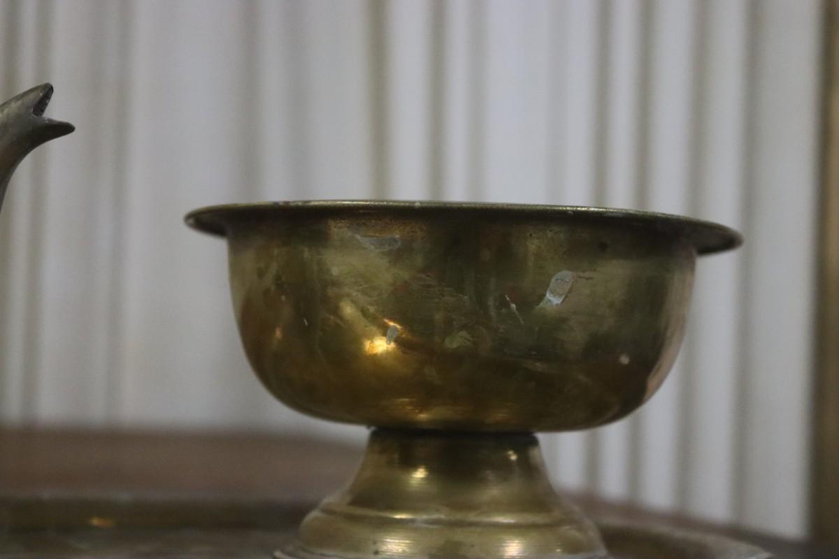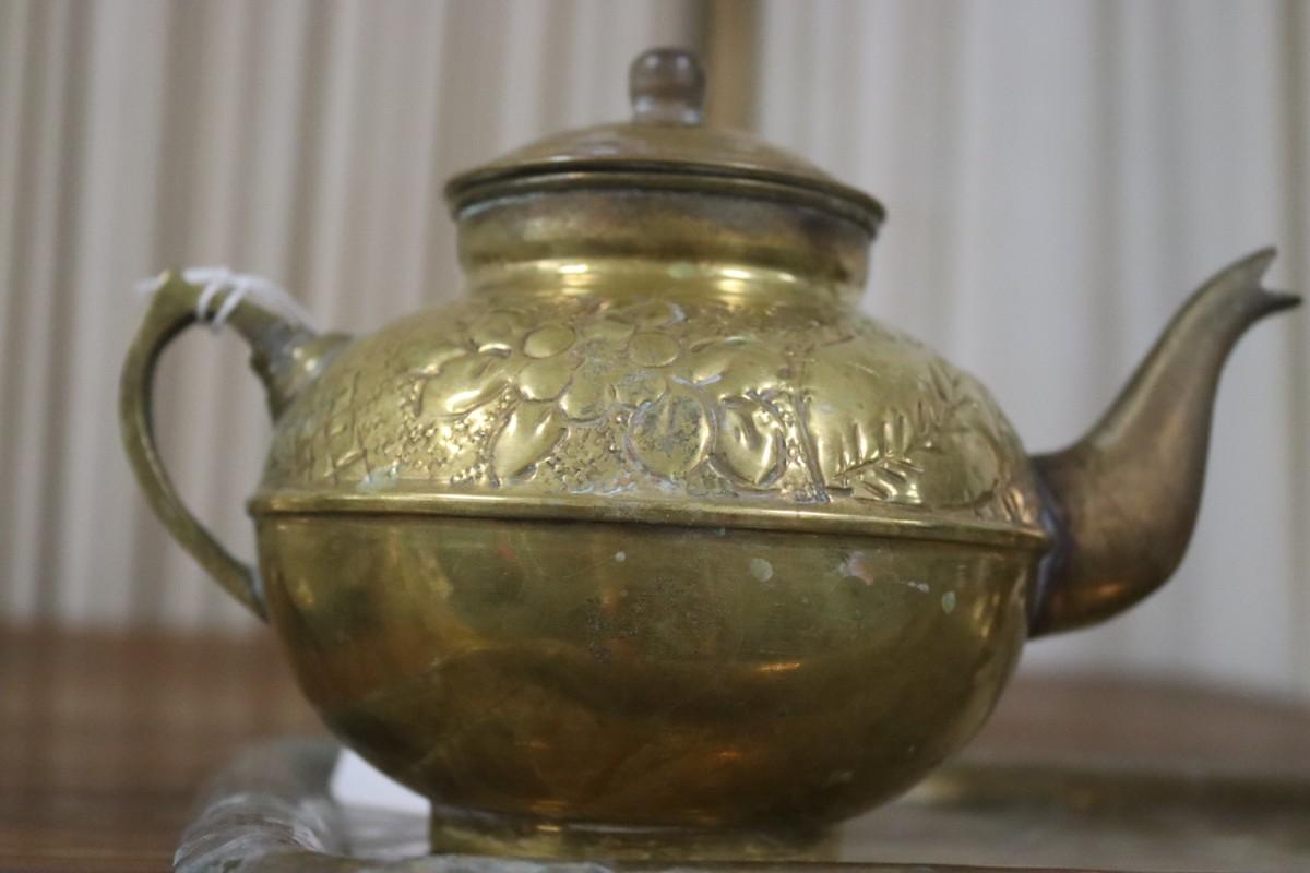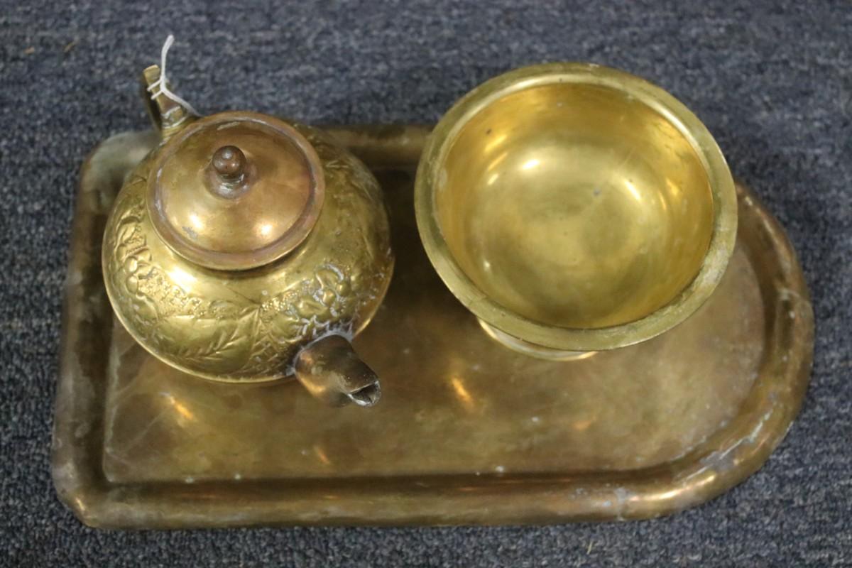 Russian 3 Piece Brass Set - Tray, Teapot, Bowl
