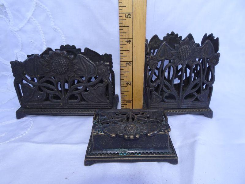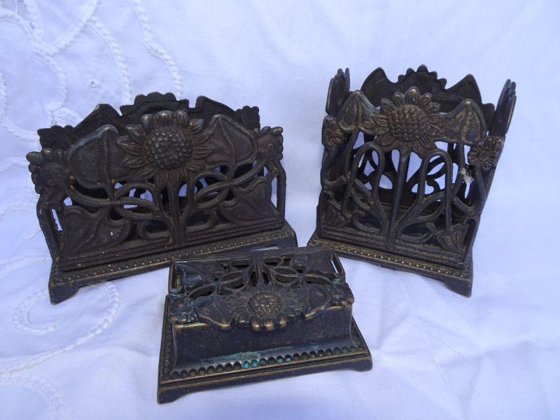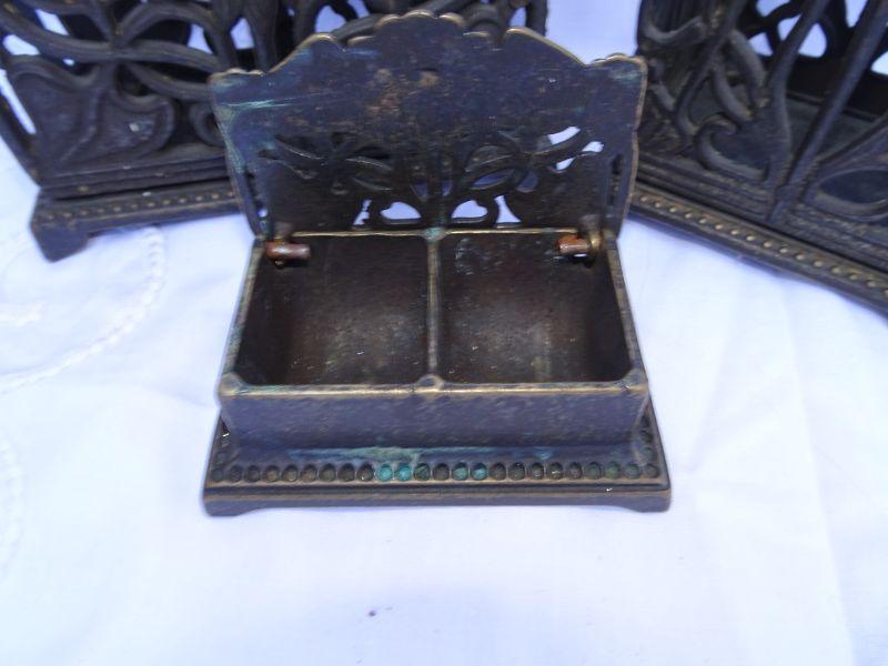 3 Piece Cast Iron Letter Holder, Envelope Holder and Ink Well