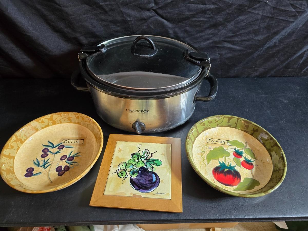 3 piece Crock Pot with two large serving bowls and a hot plate