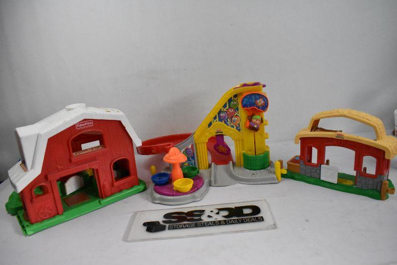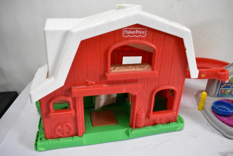 3 Piece Fisher-Price Toys: Large Barn, Small Barn, Rollercoaster - Need Cleaning