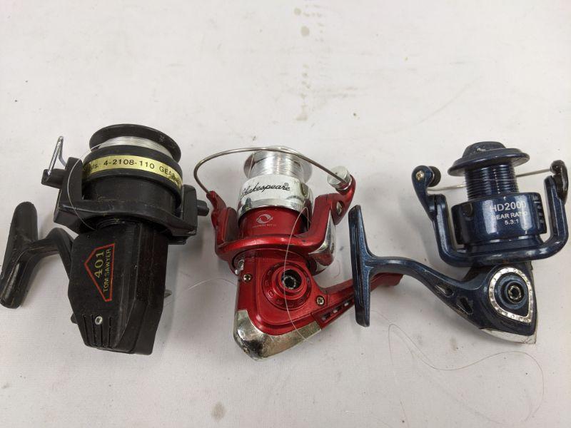 3 Piece Fishing Reel Lot - Shakespeare, HD2000, Tom Sawyer
