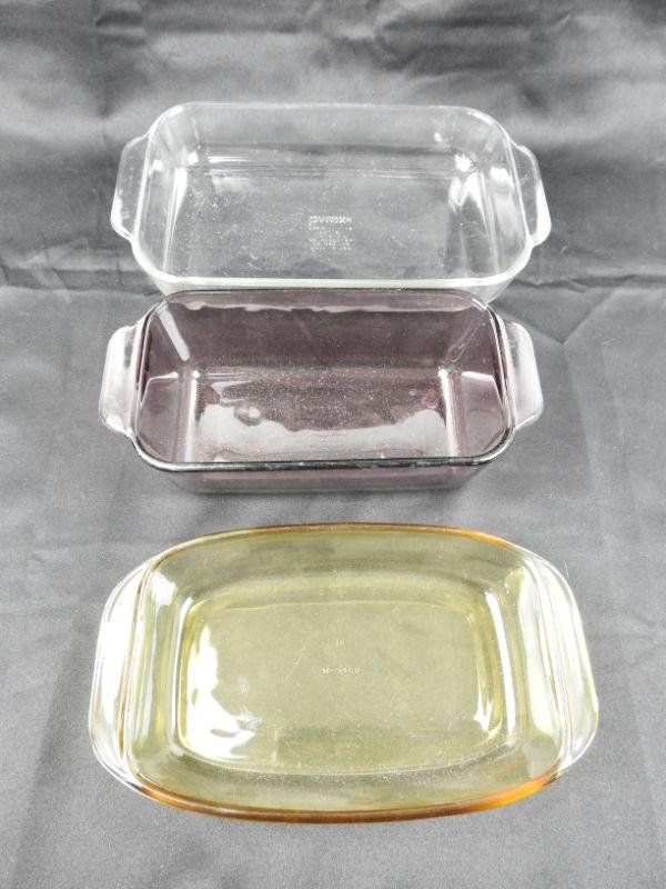 3 Piece Glass Casserole Dishes, 2 Pyrex and 1 Yellow