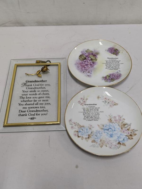 3 Piece Grandmother Decor Lot - 1 Wall Decor & 2 Decorative Plates