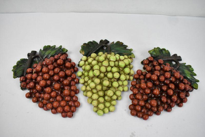 3 Piece Grape Wall Decor: 2 Red & 1 Green, Hand Painted Vintage