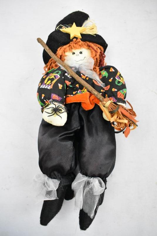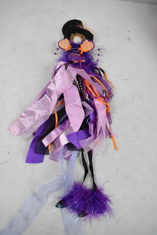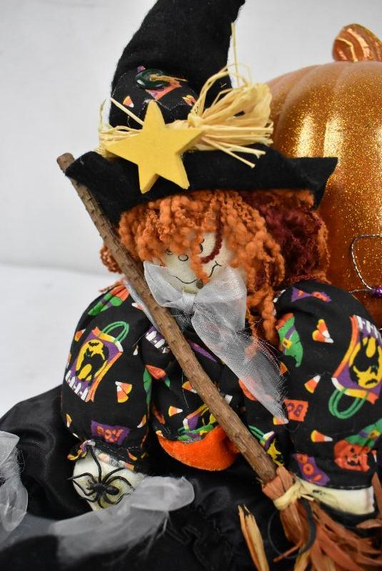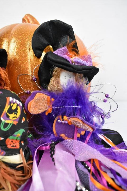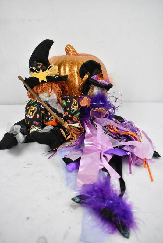 3 Piece Halloween Decor: 1 Sparkly Orange Pumpkin & 2 Witches