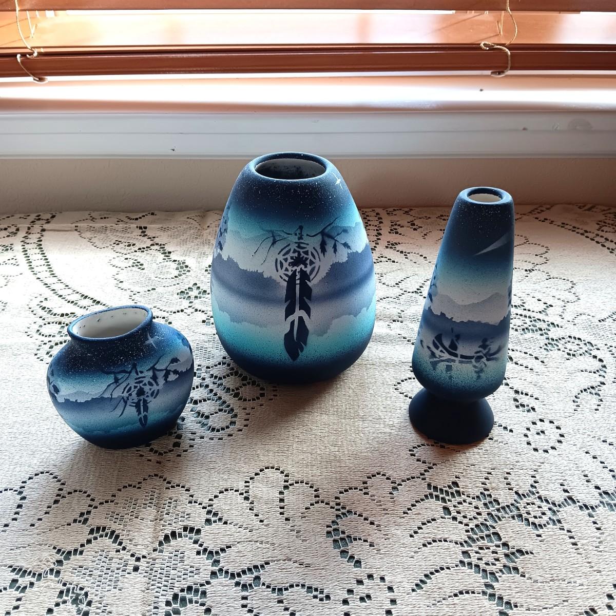 3 PIECE HAND PAINTED & SIGNED POTTERY