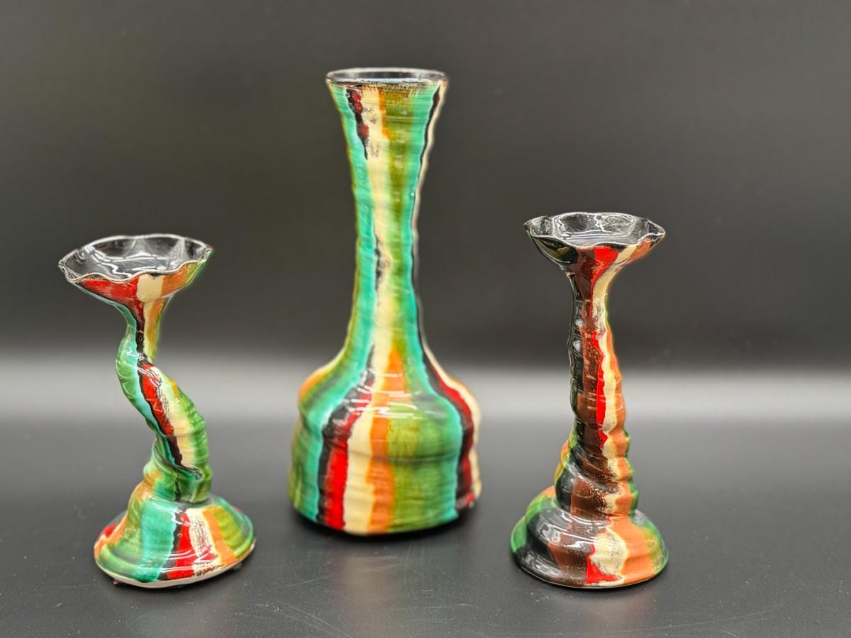 3 Piece Lot - Hand Forged Signed Art Pottery