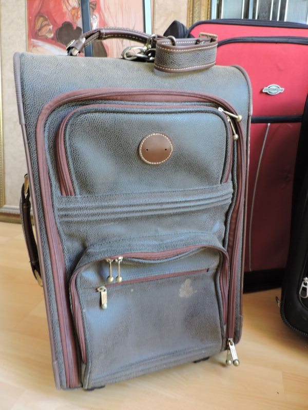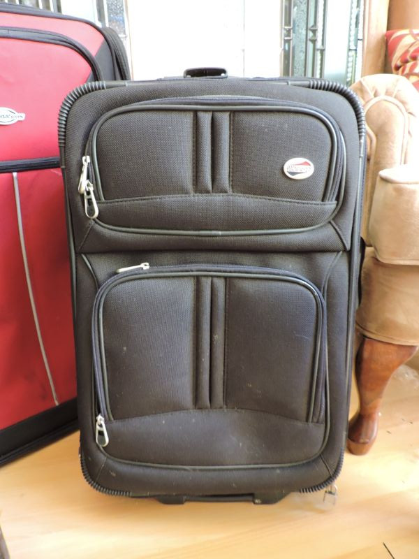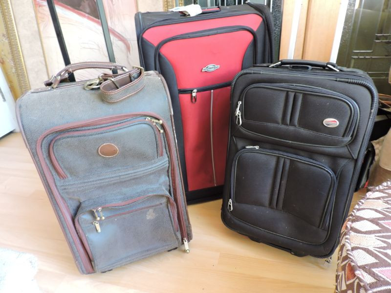 Collection of three pieces of luggage. Two carry-on 14”x22”x9” and one checked 18”x28”x12”. Good condition, need some cleaning.