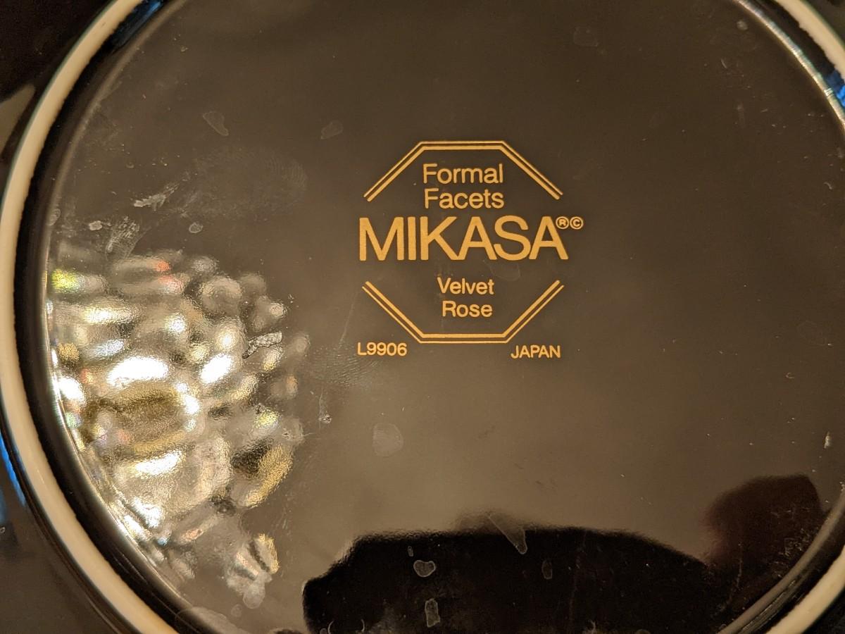 3 Piece Mikasa Velvet Rose Plates, Black with Gold